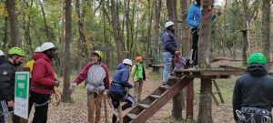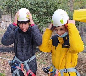 Una actividad que comenzó con la puesta del arnés que aseguraba a los alumnos y alumnas, para poder hacerla sin peligro y de una pequeña explicación de las normas de seguridad del circuito.