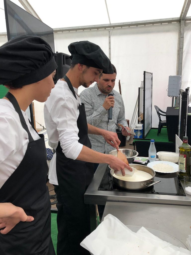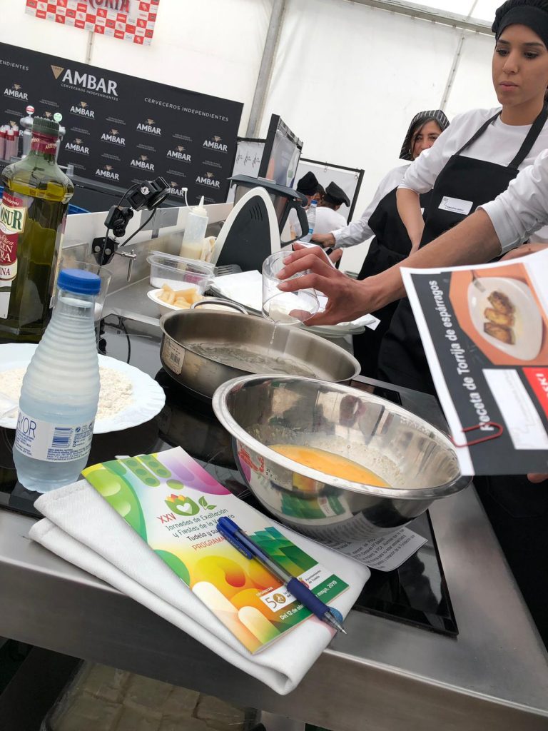 El pasado miércoles 17 de abril la Fundación El Castillo realizó un Taller de Cocina en la carpa de La Orden del Volatín durante las XXV Jornadas de Exaltación y Fiestas de la Verdura de Tudela. En este taller se llevó a cabo dos recetas, siendo elaboradas por los alumnos de la FP Básica de Cocina y Restauración. Un evento que resulto muy ameno por la simpatía y el buen hacer del alumnado que intervino (Soukaina, Mario, Lorenzo, Ainara).
